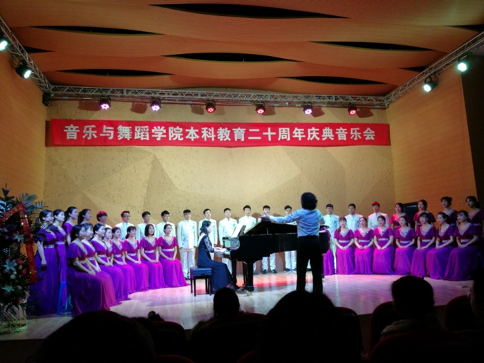 青年教师联袂演唱的歌曲《阳光路上》,表达了对学校、学院未来祝福。整场音乐会格调高雅,精彩纷呈,充分展示了音乐与舞蹈学科的特色。