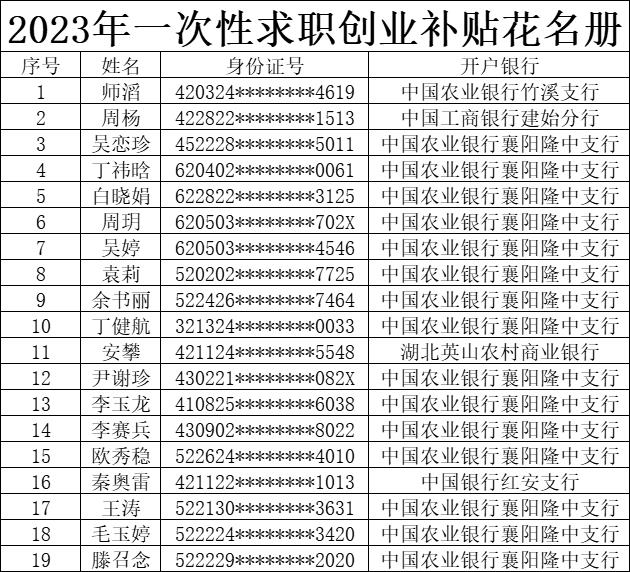 根据《省人力资源和社会保障厅省教育厅关于进一步明确一次性求职创业补贴发放工作有关事项的通知》(鄂人社发(2020〕44号)和《湖北省就业补助资金管理办法》(鄂财社发(2017) 102号)文件精神,对符合条件的2023学年内有就业创业意愿并积极求职创业的的贫困残疾人家庭、建档立卡贫困家庭、城乡低保家庭、获得国家助学贷款的以及属于社会孤儿、烈属、残疾人的七类毕业生可给予一次性求职创业补贴。经个人申请、学院初审,确认师滔等19人符合一次性求职创业补贴申报条件(名单附后),按市区最低工资标准的80%给予一次性求职创业补贴(1800元×80%=1440元)。